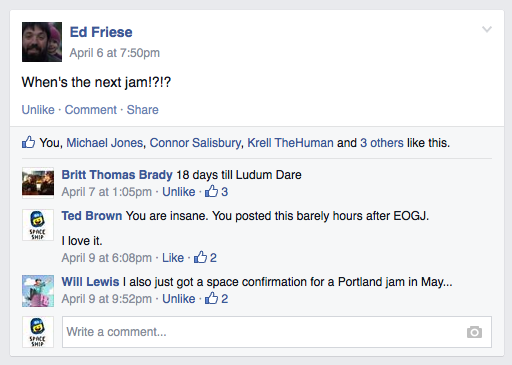 This was primarily thanks to amazing support from the staff and security at LCC, as well as the passionate local developers who have fully dived in to "jam culture."